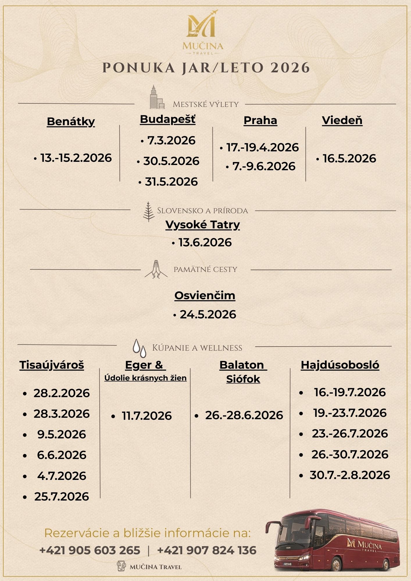 Výlety, rezervácie: +421 905 603 265